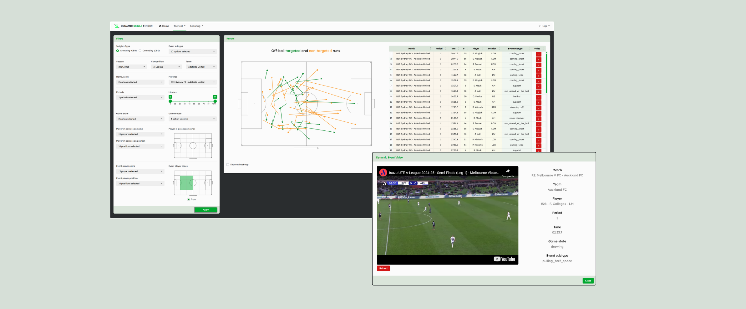 The second core component is an R Shiny web application that connects directly to the Delta Lake. It has been developed following R package structure and principles and it is designed to support tactical analysis and player scouting by leveraging tracking and dynamic events data.